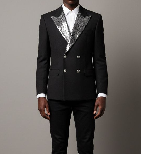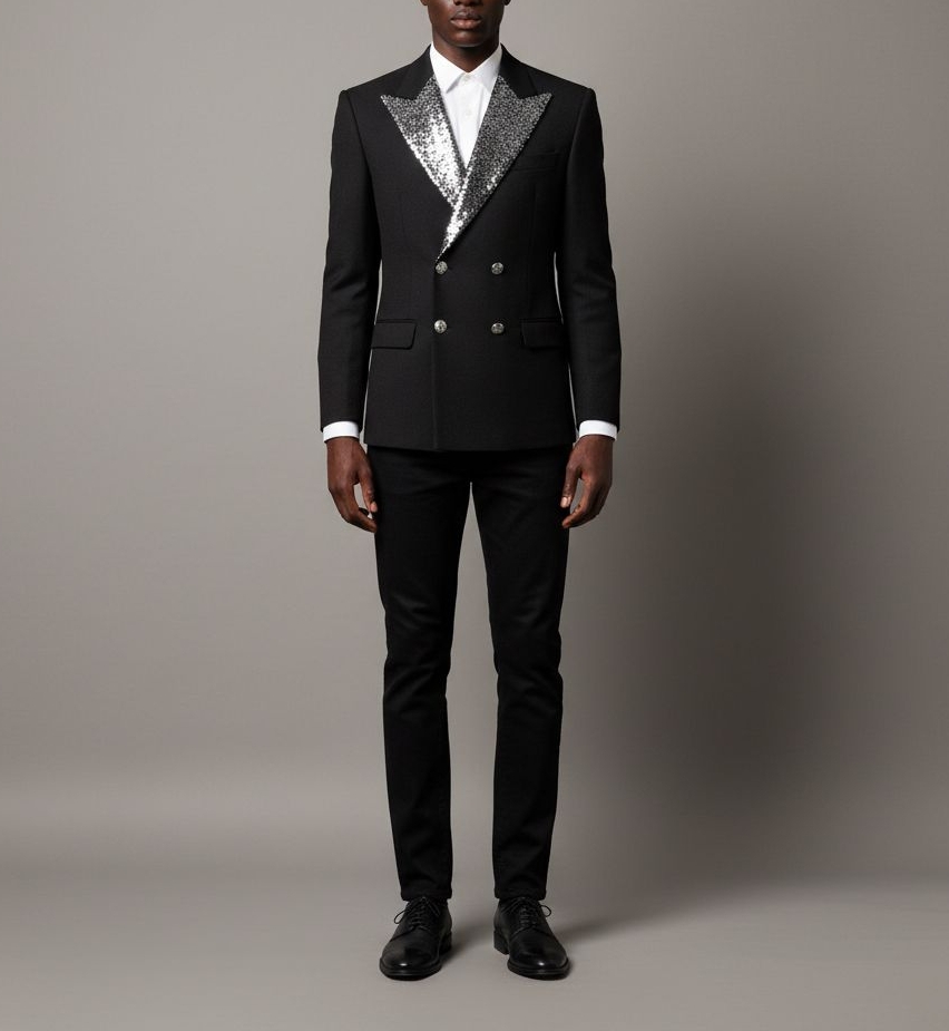 Be the first to review “BLACK SEQUIN LAPEL DOUBLE BREASTED BLAZER”