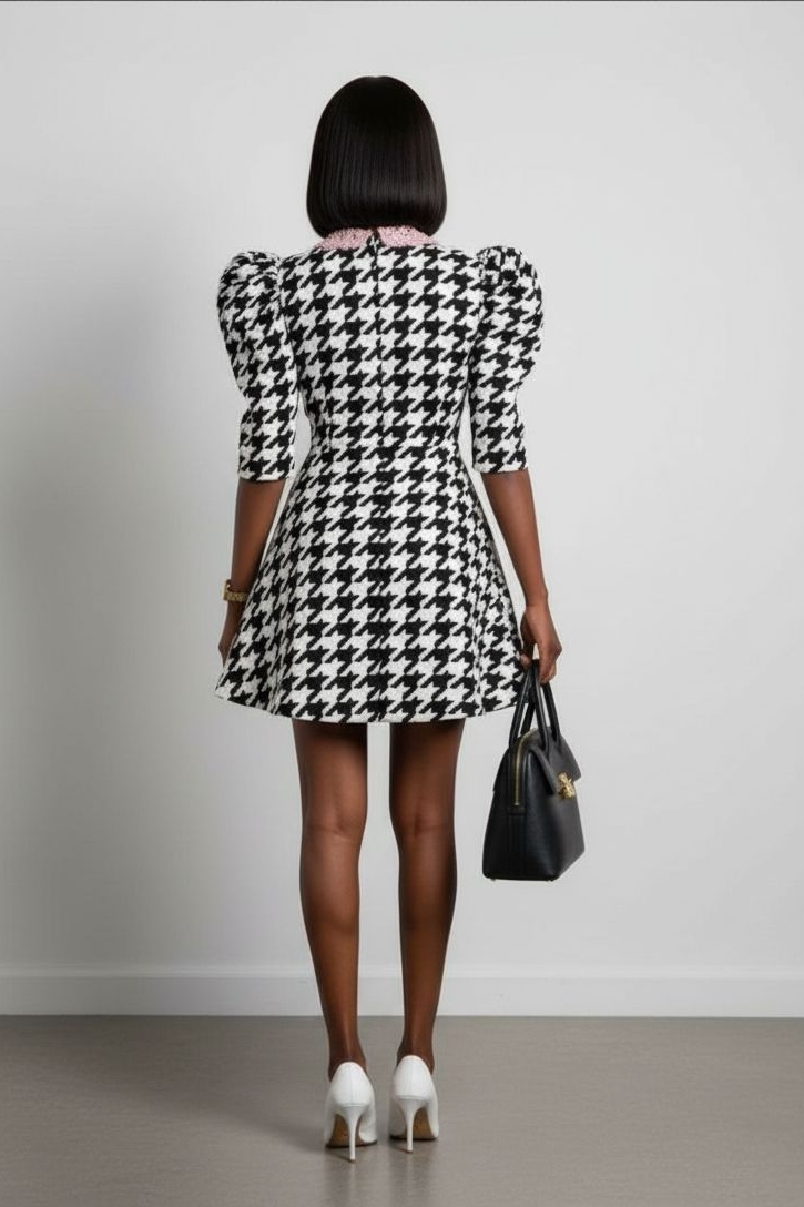 BLACK & WHITE HOUNDSTOOTH MINI DRESS