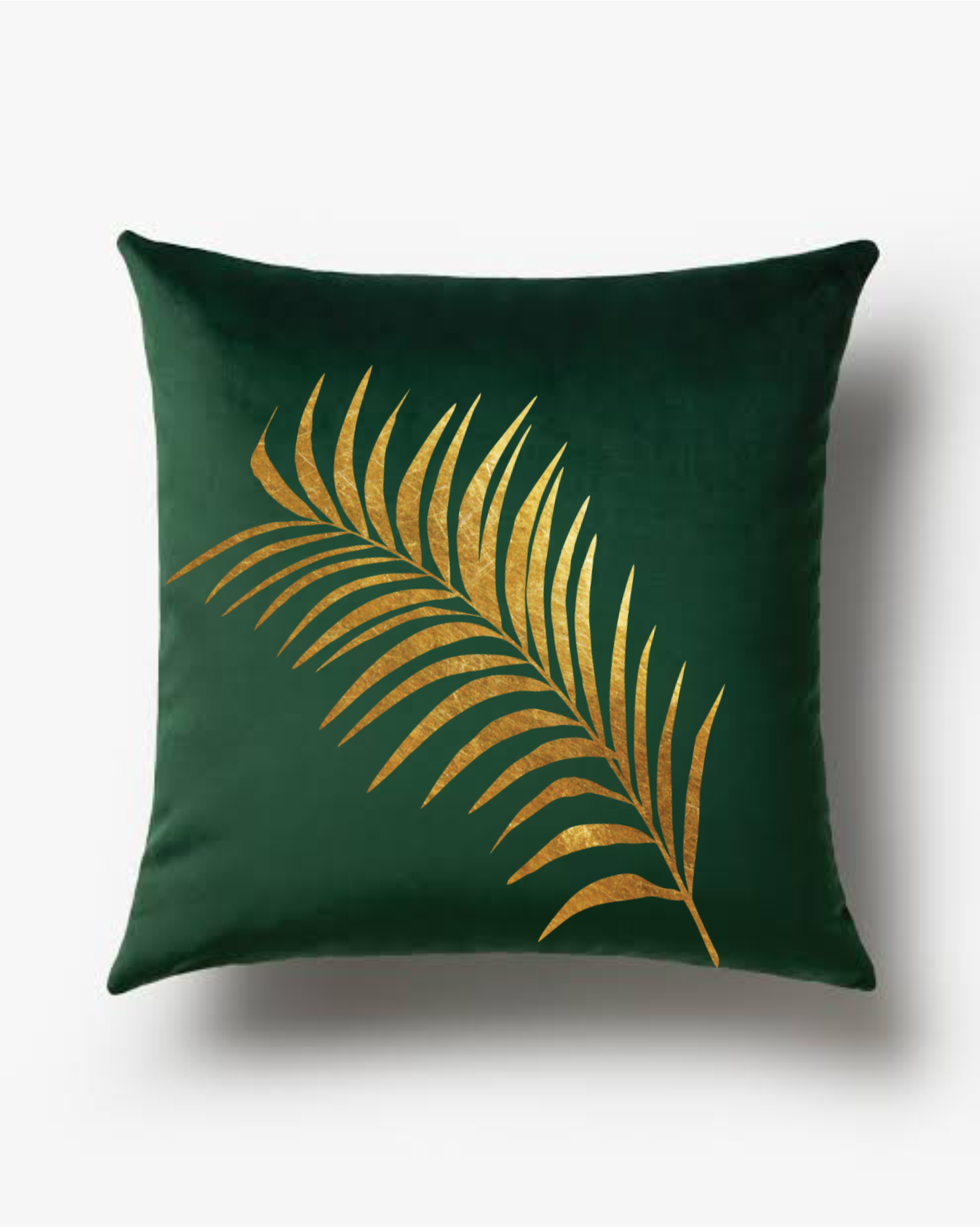 Be the first to review “GREEN THROW PILLOW GOLD PALM DETAIL”