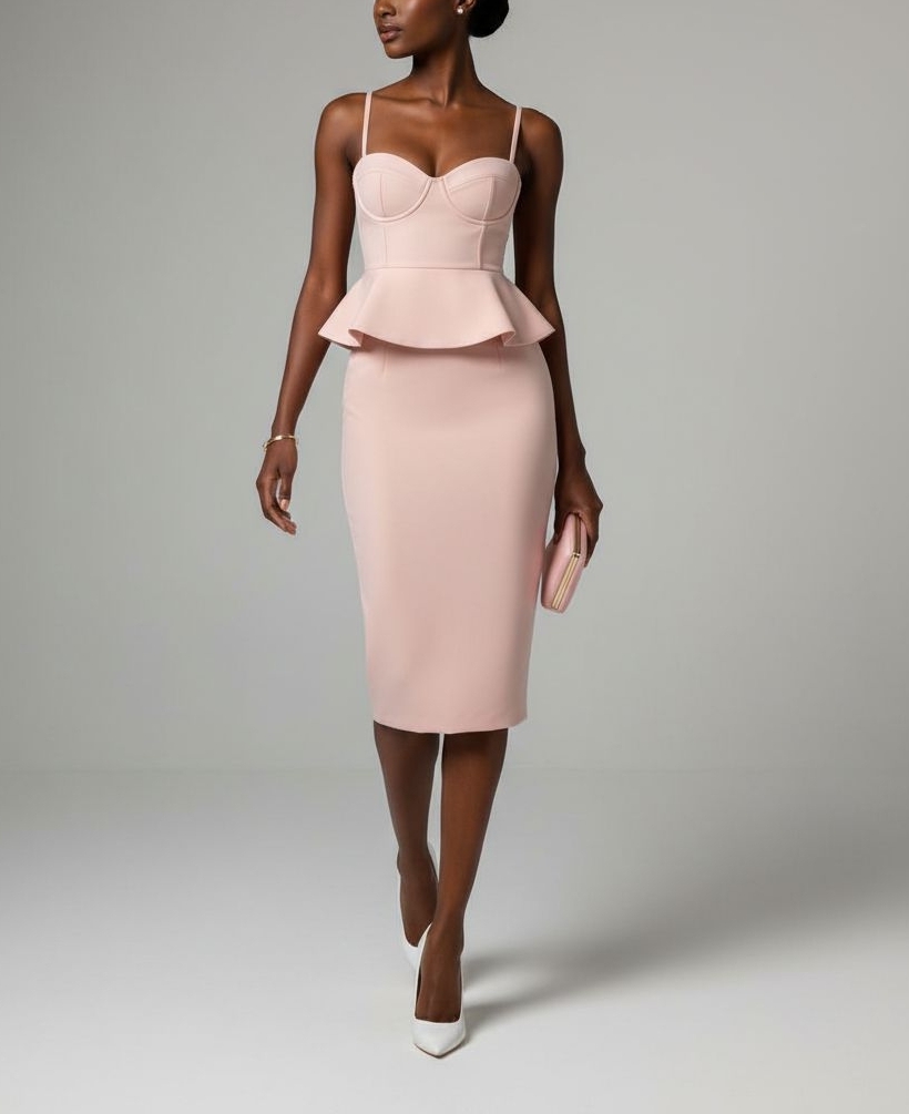 Be the first to review “PINK BUSTIER PEPLUM & MATCHING SKIRT SET”