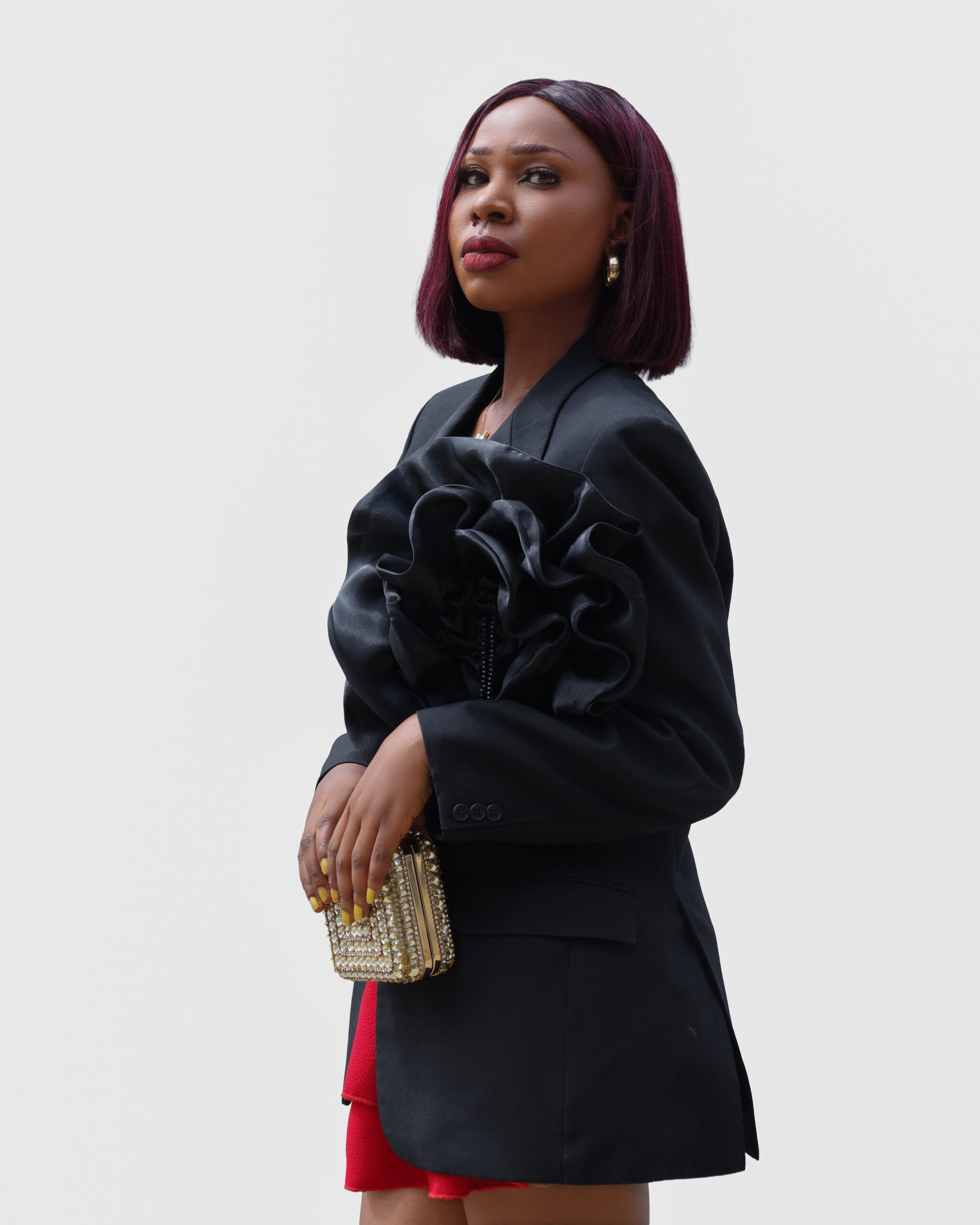 Be the first to review “BLACK BLAZER WITH BEADED BLACK ROSE RUFFLE”